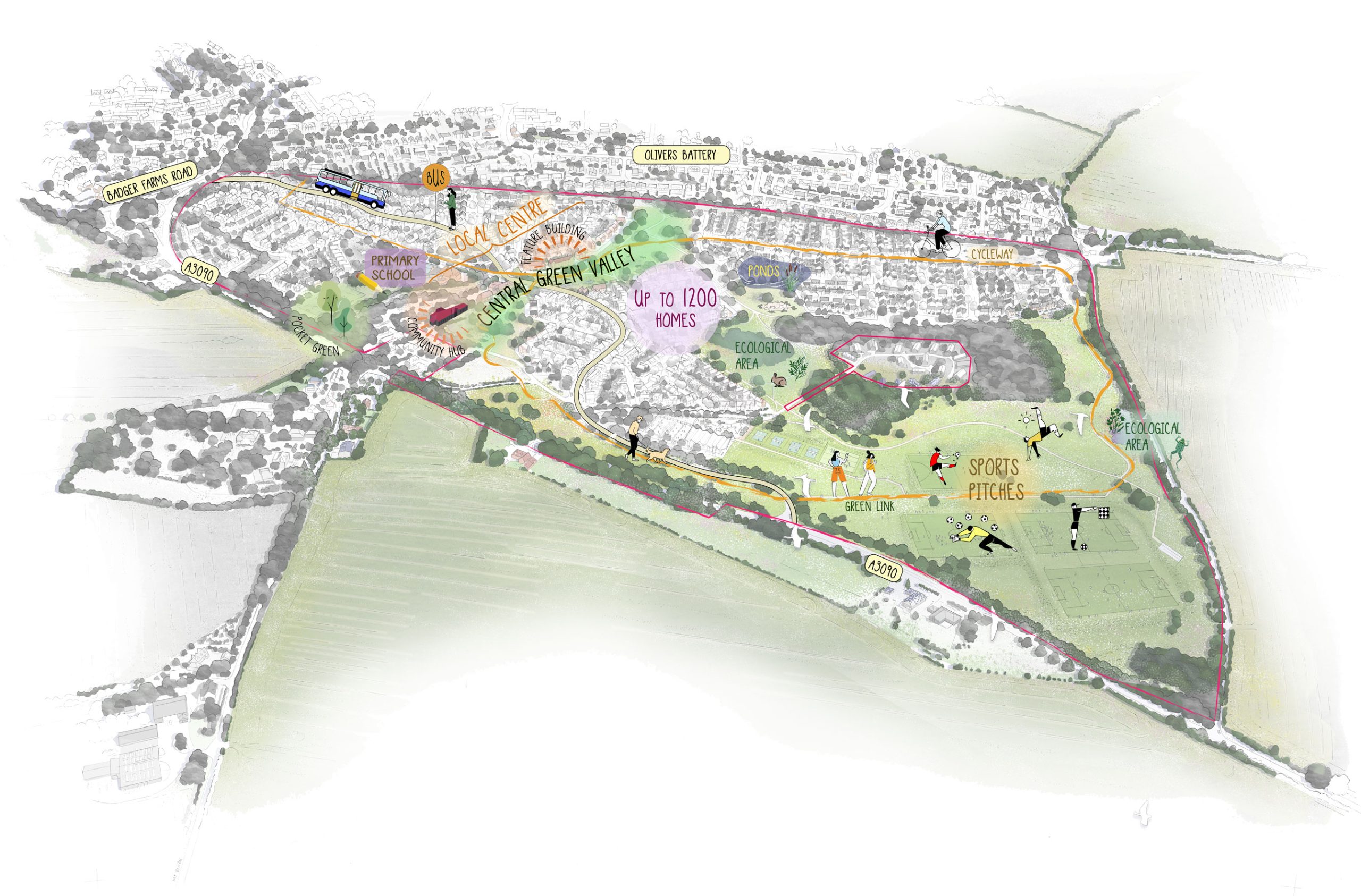 Manor Parks is shaped by the principle of natural growth and evolution of its local surroundings, drawing on the qualities and patterns of Winchester. There is an understanding of the history and legacy that underpins the city, Manor Parks offers a well balanced blend of town and country, which are driven by 4 key principles, which unlocks a wide range of benefits to the local community, such as: